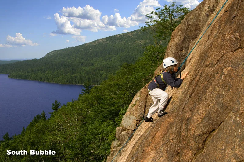 Perfect for kids or anyone who feels a little intimidated with the idea of rock climbing. The terrain at South Bubble presents several options and is a popular destination for our Family Climbing Experience courses. With amazing views of Jordan Pond, the Cranberry Islands and Pemetic Mountain the South Bubble is a perfect spot for the whole family!