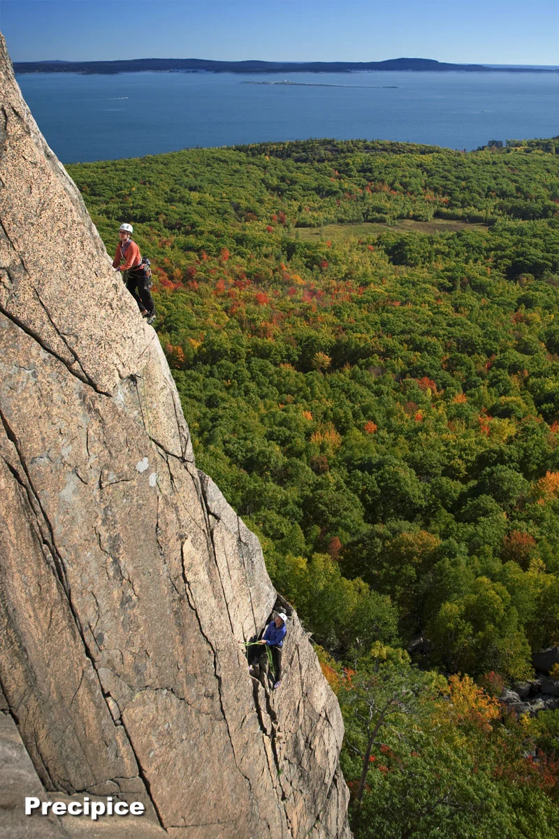 Acadia National Park is located just down the road from our office and is highly regarded for its impeccable granite. Although there are certainly bigger cliffs to climb in many other areas of the country, none can match the singularly unique beauty of Acadia’s cliffs. From the granite slabs of the South Bubble overlooking Jordan Pond, the idyllic seaside location of Otter Cliffs, or the longer climbs found on the Precipice, Acadia offers a truly diverse range of climbing terrain. This diversity is fortunate for us and a huge benefit to our clients: it allows us to be selective in choosing a climbing site best suited to a particular client or course. The winter potential in Acadia is endless! Acadia hosts half a dozen amazing ice climbing venues, hundreds of miles of secluded and beautiful trails, as well as steep and snowy mountains! Regardless of the time of year, there are always an amazing adventure just around the corner in Acadia National Park!